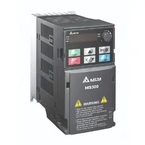 The Delta VFD5A5MS43ENSAA Variable Frequency Drive is designed for controlled motor operation, supporting 2.2 kW and 3 HP applications using a stable 460V, Three-phase AC 380 V ~480 V, 50 / 60 Hz input operation. It delivers a rated 5.5 A Heavy duty output current and 6.5 A Normal duty output current. The drive uses a Natural air cooling method and features an IP40 enclosure suitable for cabinet-integrated environments requiring internal protection. Manufactured by Delta, part of the Delta Variable Frequency Drive family within the Delta MS300 Series.